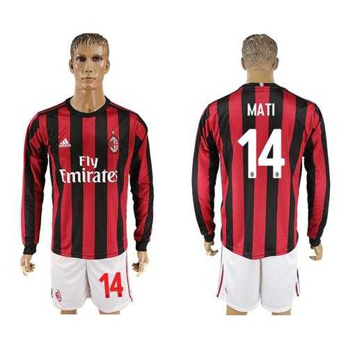 AC Milan #14 Mati Home Long Sleeves Soccer Club Jersey