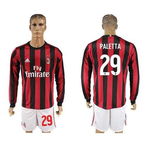 AC Milan #29 Paletta Home Long Sleeves Soccer Club Jersey