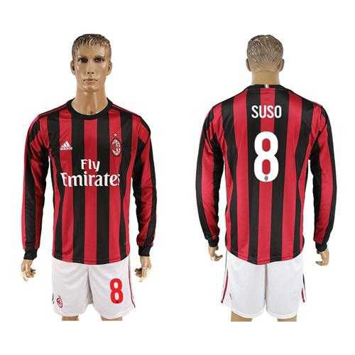 AC Milan #8 Suso Home Long Sleeves Soccer Club Jersey