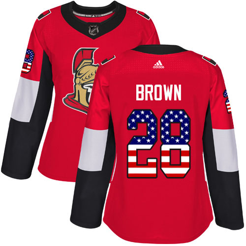 Adidas Ottawa Senators #28 Connor Brown Red Home Authentic USA Flag Womens Stitched NHL Jersey