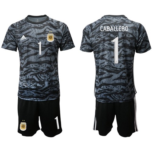 Argentina #1 Caballero Black Goalkeeper Soccer Country Jersey