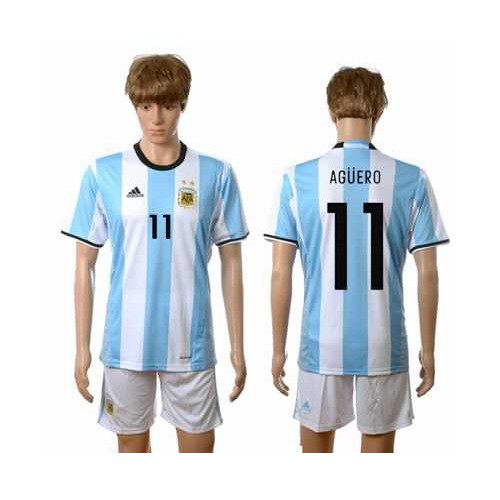 Argentina #11 Aguero Home Soccer Country Jersey