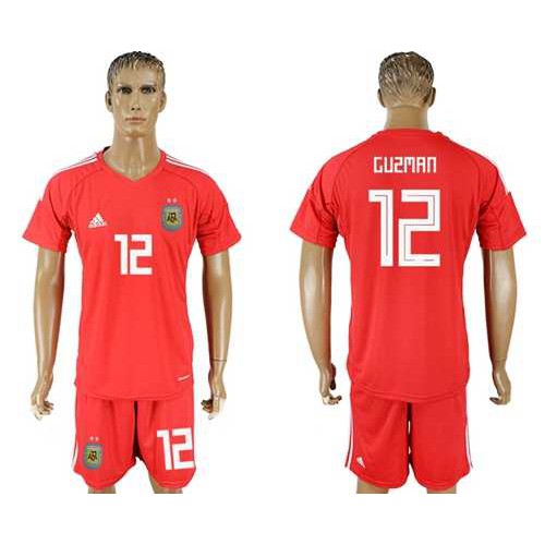 Argentina #12 Guzman Red Goalkeeper Soccer Country Jersey