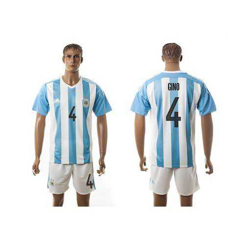 Argentina #4 Gino Home Soccer Country Jersey