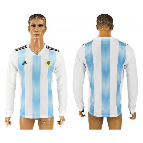Argentina Home 2018 FIFA World Cup Long Sleeve Thailand Soccer Jersey