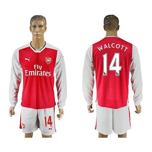 Arsenal #14 Walcott Red Home Long Sleeves Soccer Club Jersey
