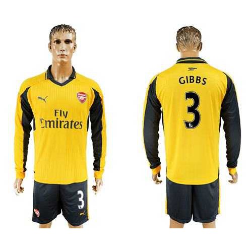 Arsenal #3 Gibbs Away Long Sleeves Soccer Club Jersey