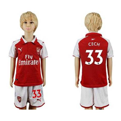 Arsenal #33 Cech Home Kid Soccer Club Jersey