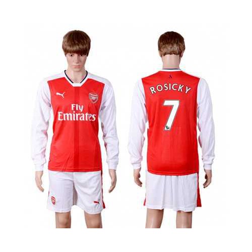 Arsenal #7 Rosicky Red Home Long Sleeves Soccer Club Jersey