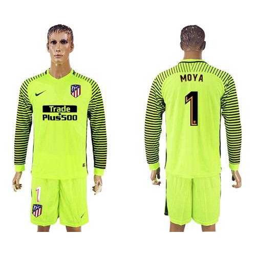 Atletico Madrid #1 Moya Shiny Green Goalkeeper Long Sleeves Soccer Club Jersey