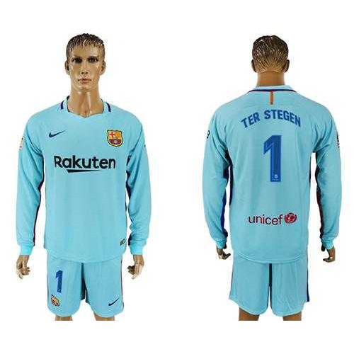 Barcelona #1 Ter Stegen Away Long Sleeves Soccer Club Jersey
