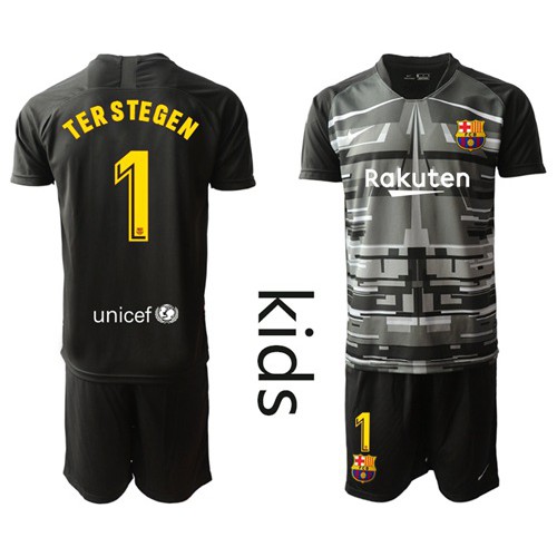 Barcelona #1 Ter Stegen Black Goalkeeper Kid Soccer Club Jersey