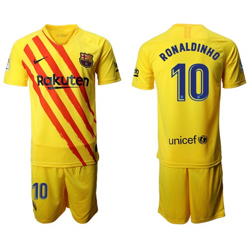 Barcelona #10 Ronaldinho Yellow Soccer Club Jersey