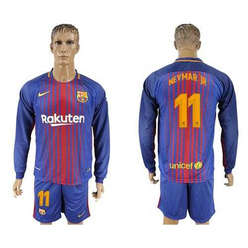 Barcelona #11 Neymar Jr Home Long Sleeves Soccer Club Jersey