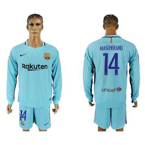 Barcelona #14 Mascherano Away Long Sleeves Soccer Club Jersey