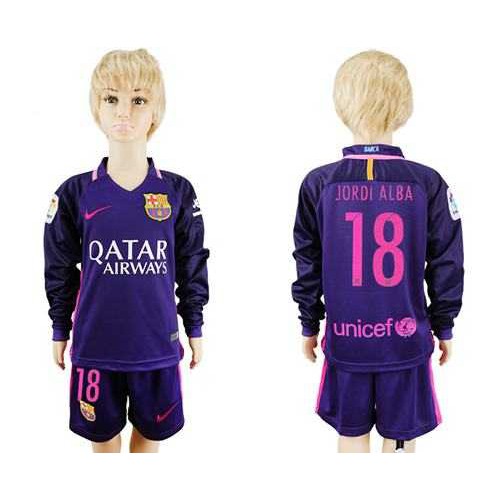 Barcelona #18 Jordi Alba Away Long Sleeves Kid Soccer Club Jersey