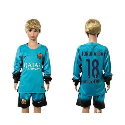 Barcelona #18 Jordi Alba SEC Away Long Sleeves Kid Soccer Club Jersey