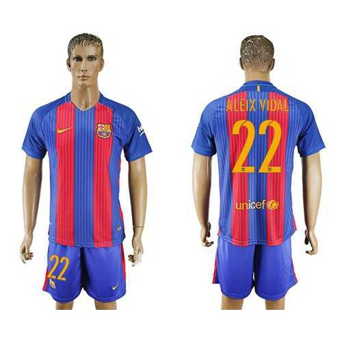 Barcelona #22 Aleix Vidal Home With Blue Shorts Soccer Club Jersey