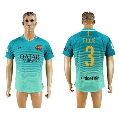 Barcelona #3 Pique Sec Away Soccer Club Jersey