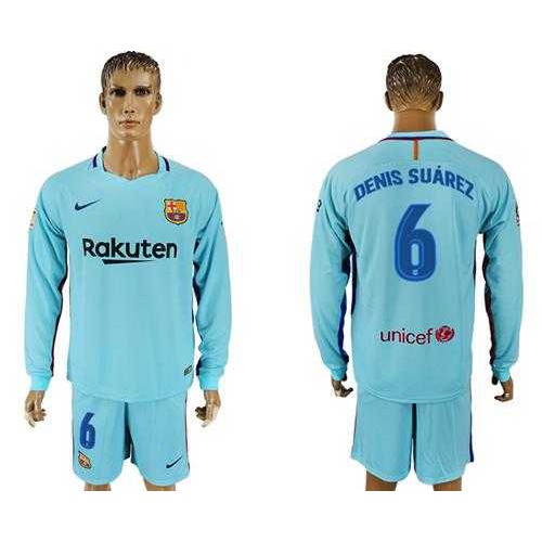 Barcelona #6 Denis Suarez Away Long Sleeves Soccer Club Jersey
