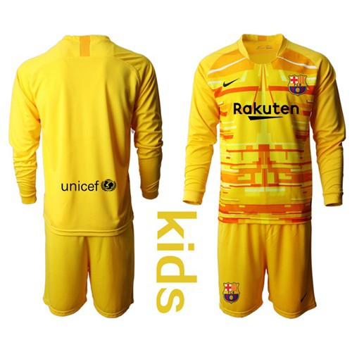 Barcelona Blank Yellow Goalkeeper Long Sleeves Kid Soccer Club Jersey