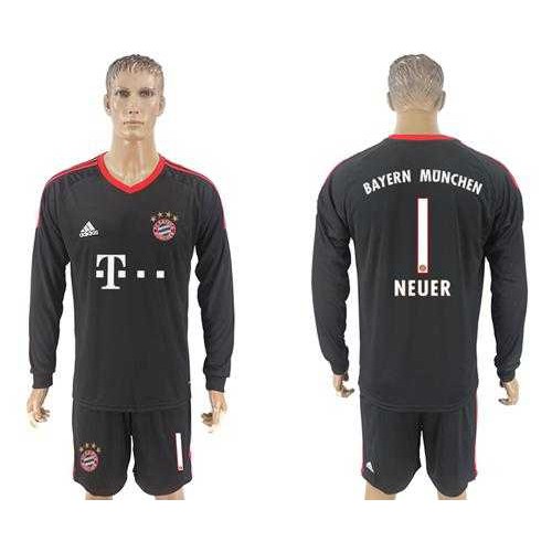 Bayern Munchen #1 Neuer Black Goalkeeper Long Sleeves Soccer Club Jersey
