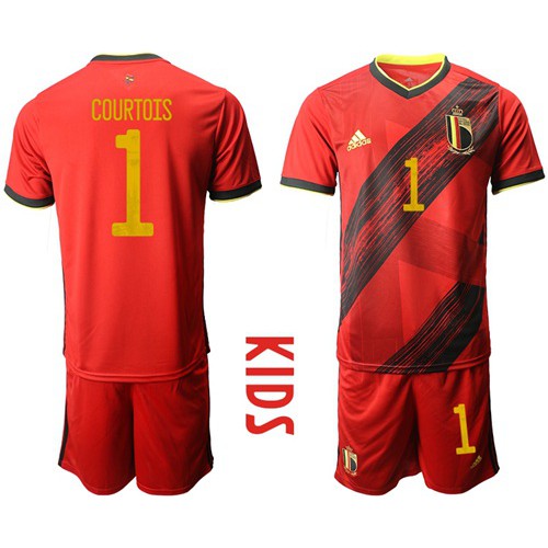 Belgium #1 Courtois Red Home Kid Soccer Country Jersey