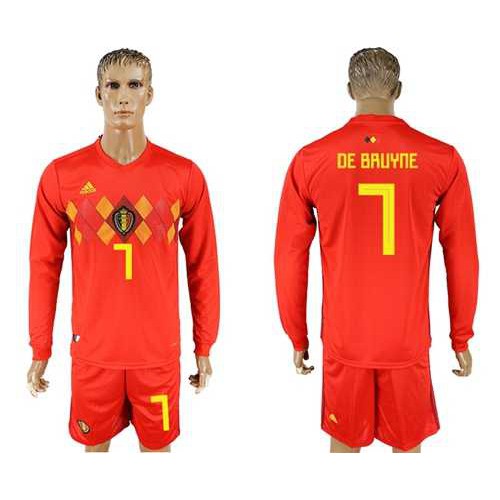 Belgium #7 De Bruyne Red Home Long Sleeves Soccer Country Jersey