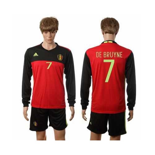 Belgium #7 De Bruyne Red Home Long Sleeves Soccer Country Jersey