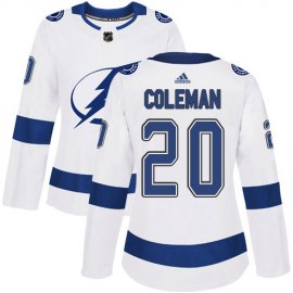 Adidas Tampa Bay Lightning #20 Blake Coleman White Road Authentic Womens 2020 Stanley Cup Champions Stitched NHL Jersey