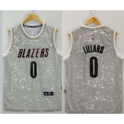 Blazers #0 Damian Lillard Grey City Light Stitched NBA Jersey