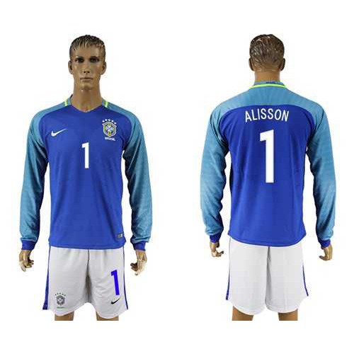 Brazil #1 Alisson Away Long Sleeves Soccer Country Jersey