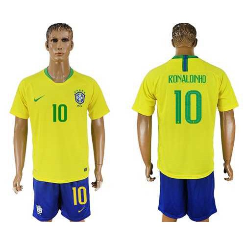 • Brazil #10 Ronaldinho Home Soccer Country Jersey