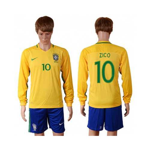 Brazil #10 Zico Home Long Sleeves Soccer Country Jersey