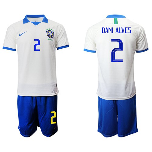 Brazil #2 Dani Alves White Soccer Country Jersey