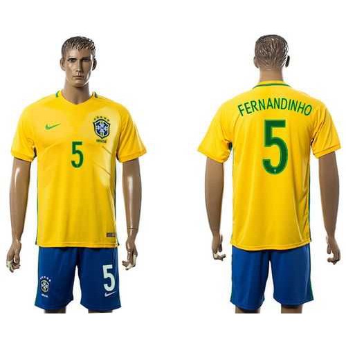 Brazil #5 Fernandinho Home Soccer Country Jersey