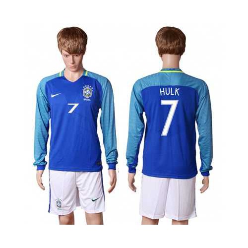Brazil #7 Hulk Away Long Sleeves Soccer Country Jersey