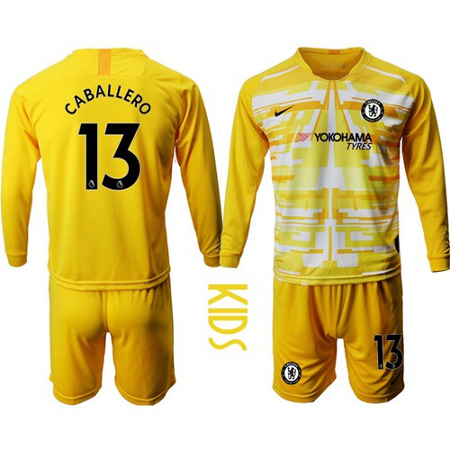 • Chelsea #13 Caballero Yellow Goalkeeper Long Sleeves Kid Soccer Club Jersey