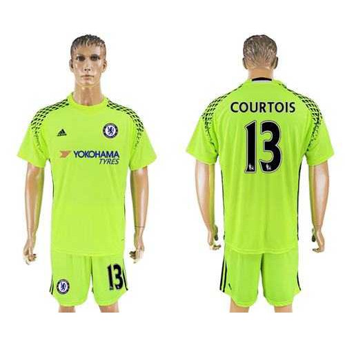 Chelsea #13 Courtois Shiny Green Goalkeeper Soccer Club Jersey