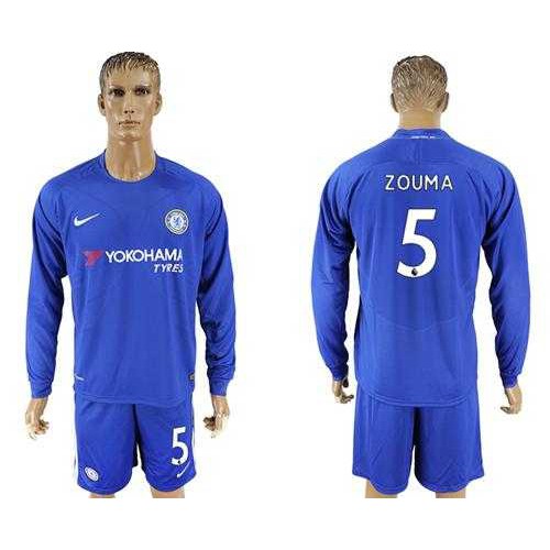Chelsea #5 Zouma Home Long Sleeves Soccer Club Jersey