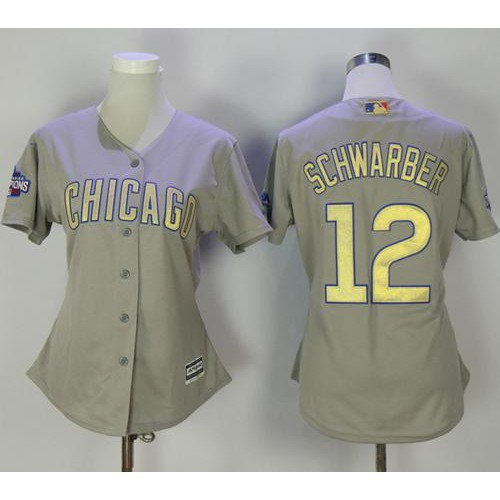 • Chicago Cubs #12 Kyle Schwarber Grey 2017 Gold Program Cool Base Womens Stitched MLB Jersey