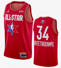 Mens Milwaukee Bucks #34 Giannis Antetokounmpo Red Jordan Brand 2020 All-Star Game Swingman Stitched NBA Jersey