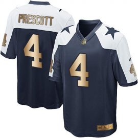 Nike Dallas Cowboys #4 Dak Prescott Navy Blue Thanksgiving Throwback Youth Stitched NFL Elite Gold Jersey
