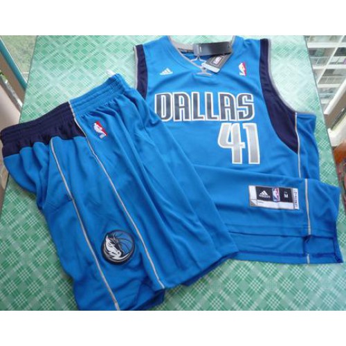 Dallas Mavericks 41 Dirk Nowitzki Light Blue Revolution 30 Swingman Jersey & Shorts Suit Cheap