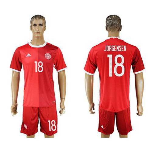 Danmark #18 Jorgensen Red Home Soccer Country Jersey