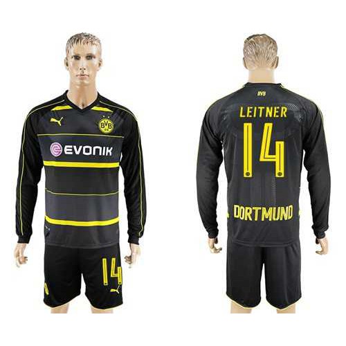 Dortmund #14 Leitner Away Long Sleeves Soccer Club Jersey