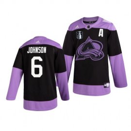 Colorado Colorado Avalanche #6 Erik Johnson Adidas 2022 Stanley Cup Final Patch Mens Hockey Fights Cancer Practice NHL Jersey Black Mens