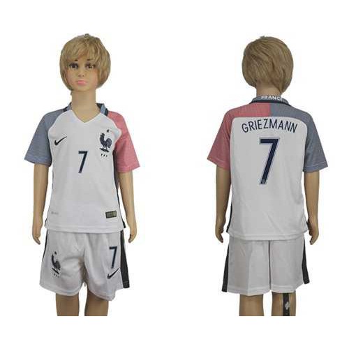 France #7 Griezmann Away Kid Soccer Country Jersey