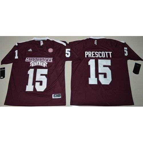• Georgia Bulldogs #15 Dak Prescott Maroon SEC Patch Stitched NCAA Jersey