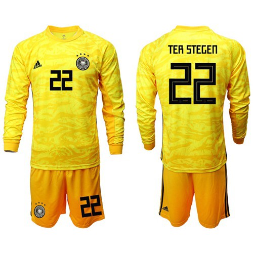 Germany #22 Ter Stegen Yellow Goalkeeper Long Sleeves Soccer Country Jersey